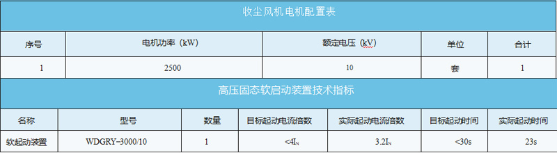 ??在保證現場配電室空間不變的條件下,我公司WDGRY型一體化高壓固態軟起動裝置并達到預期技術指標。經改造后高壓固態軟啟動裝置技術指標如表 2 所示。通過數據對比可得出,在不改變現有土建條件的情況下,原配電室高壓開關柜均改造成一體化型高壓固態軟起動裝置,改電機起動電流均達到用戶預期的要求。解決了原直接起動電機對電網和負載造成的機械沖擊和電氣沖擊,延長電機使用壽命。起動效果顯著。達到用戶預期。
